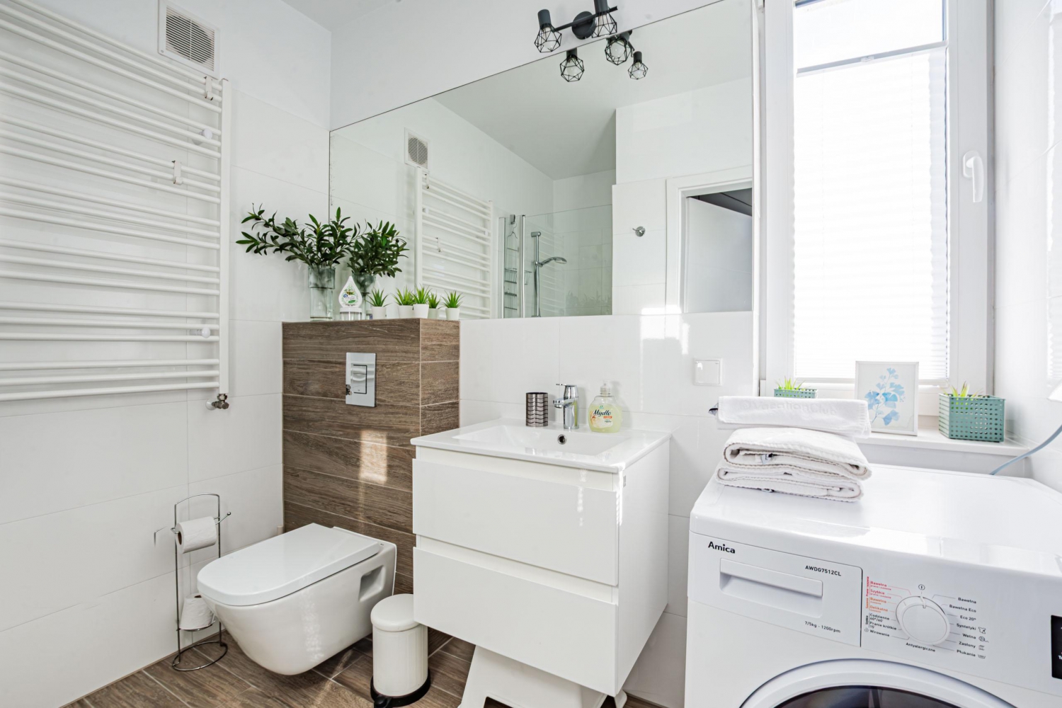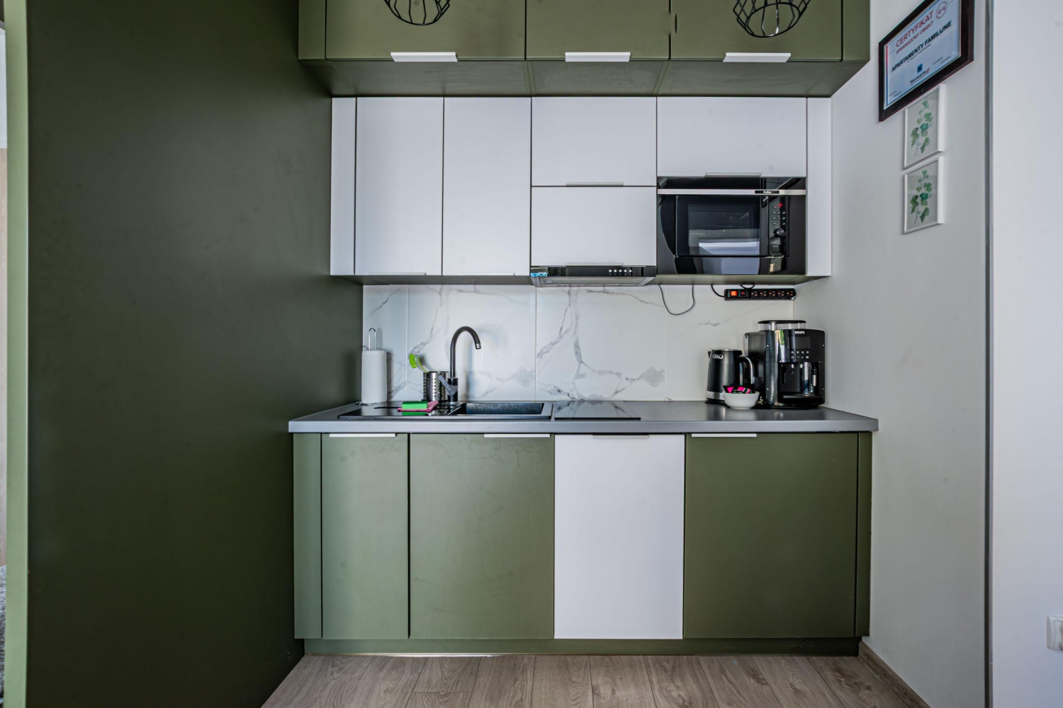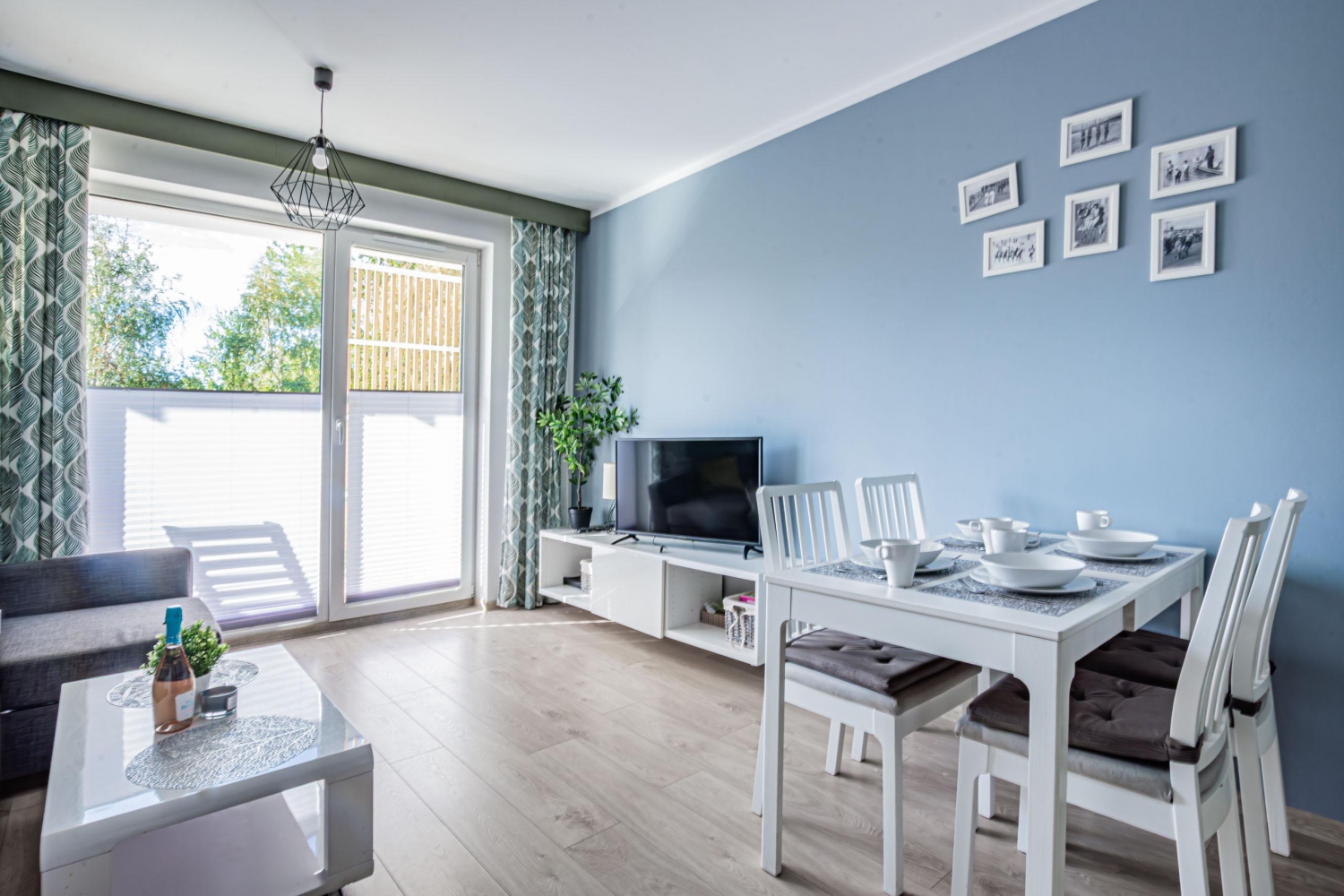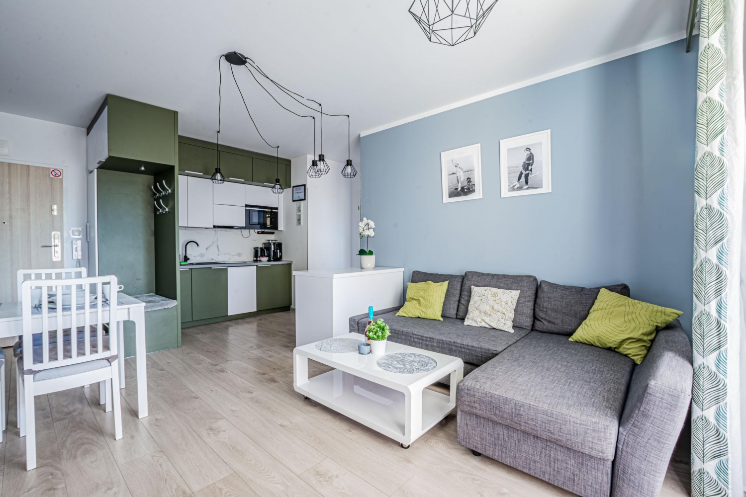 W apartamencie znajduje się aneks kuchenny przystosowany do przygotowywania codziennych posiłków. Do dyspozycji naszych Gości oddajemy lodówkę, piekarnik, zmywarkę, komplet naczyń – w tym kieliszki do wina, sztućce i akcesoria kuchenne. Wszystko, czego potrzebujesz, by samodzielnie przygotowywać posiłki i cieszyć się wspólnymi chwilami z bliskimi. Na wyposażeniu znajdują się także plastikowe naczynia dla dzieci.