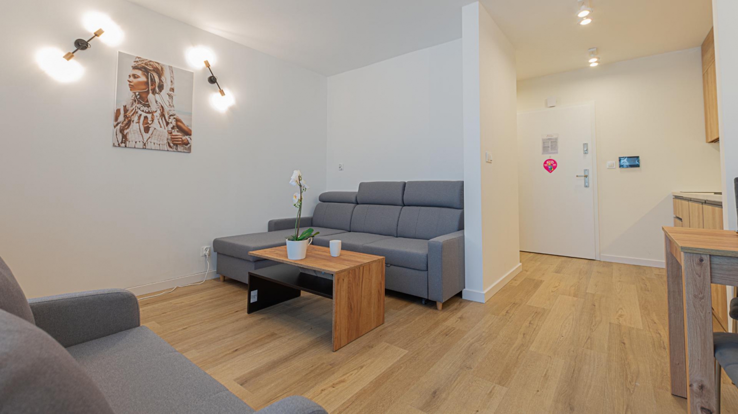 VacationClub™ Apartamenty Zakopiańskie, Apartament 328 to 1-pokojowy apartament znajdujący się na trzecim piętrze nowoczesnego kompleksu apartamentowego. Apartament posiada przestronny salon z sofą rozkładaną oraz sofą jednoosobową, aneks kuchenny i część jadalnianą. Usytuowany w spokojnej dzielnicy Zakopanego nieopodal Bachledzkiego Wierchu oraz ośrodku narciarsko-rekreacyjnego Harenda (2,5 km). Miłośnicy długich wędrówek górskich oraz sportów zimowych z pewnością odnajdą w naszym obiekcie idealne miejsce do wypoczynku i regeneracji. Nasza strefa rekreacji, znajdująca się w centralnej części budynku, została stworzona z myślą o Gościach i oferuje szeroki wachlarz udogodnień. W skład tej strefy wchodzą: sauna sucha i mokra, jacuzzi, miejsce z solną ścianą oraz wygodne leżaki do relaksu. Dla tych, którzy preferują aktywność fizyczną, dostępna jest także siłownia. Dbając o naszych najmłodszych gości, przygotowaliśmy kompleks rozrywkowy, który obejmuje dobrze wyposażoną salę zabaw oraz brodzik wodny, umiejscowiony obok jacuzzi. Dla większości naszych apartamentów roztacza się malowniczy widok na Tatry, w tym na szczyty, takie jak Giewont, Gubałówka i Harenda.