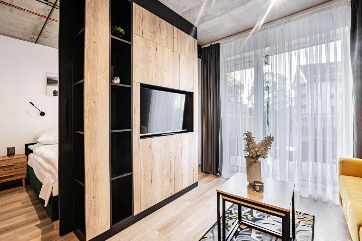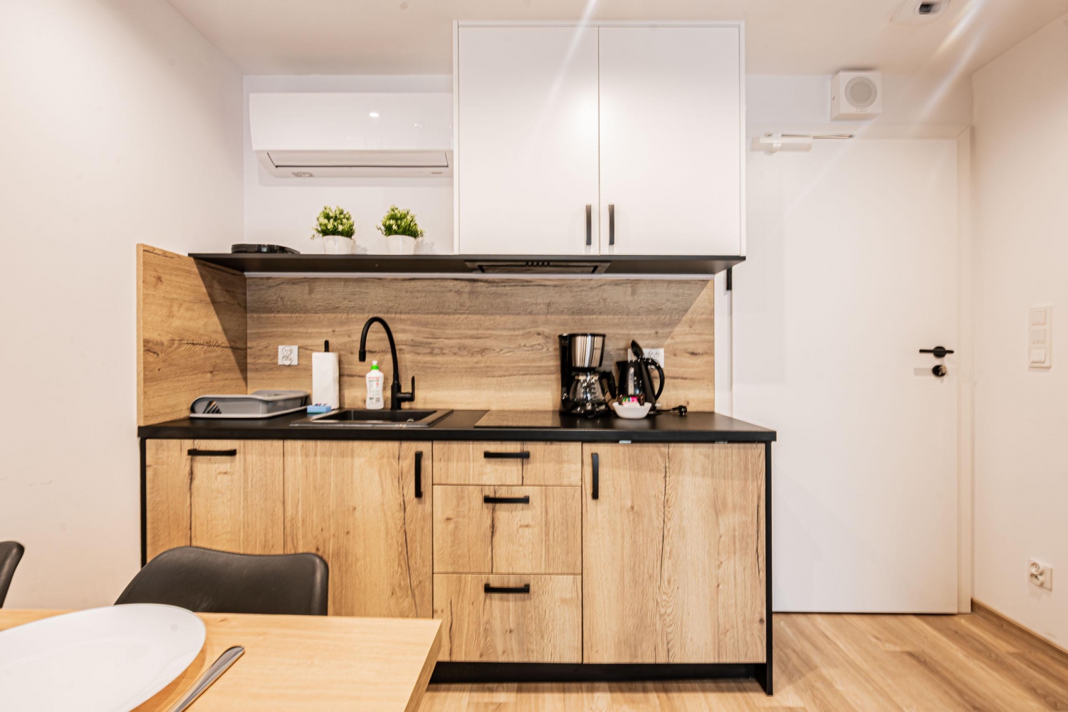 W apartamencie znajduje się doskonale wyposażony aneks kuchenny przystosowany do zaspokajania codziennych potrzeb. Do dyspozycji naszych Gości udostępniamy sprzęt AGD m.in. lodówkę, płytę grzewczą oraz komplet naczyń, sztućce, akcesoria kuchenne, szklanki i kieliszki do wina. Wszystko, co potrzebne by samodzielnie przygotować posiłki i cieszyć się wspólnymi chwilami z bliskimi.