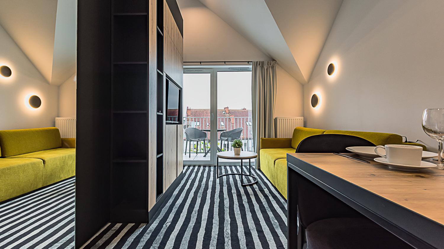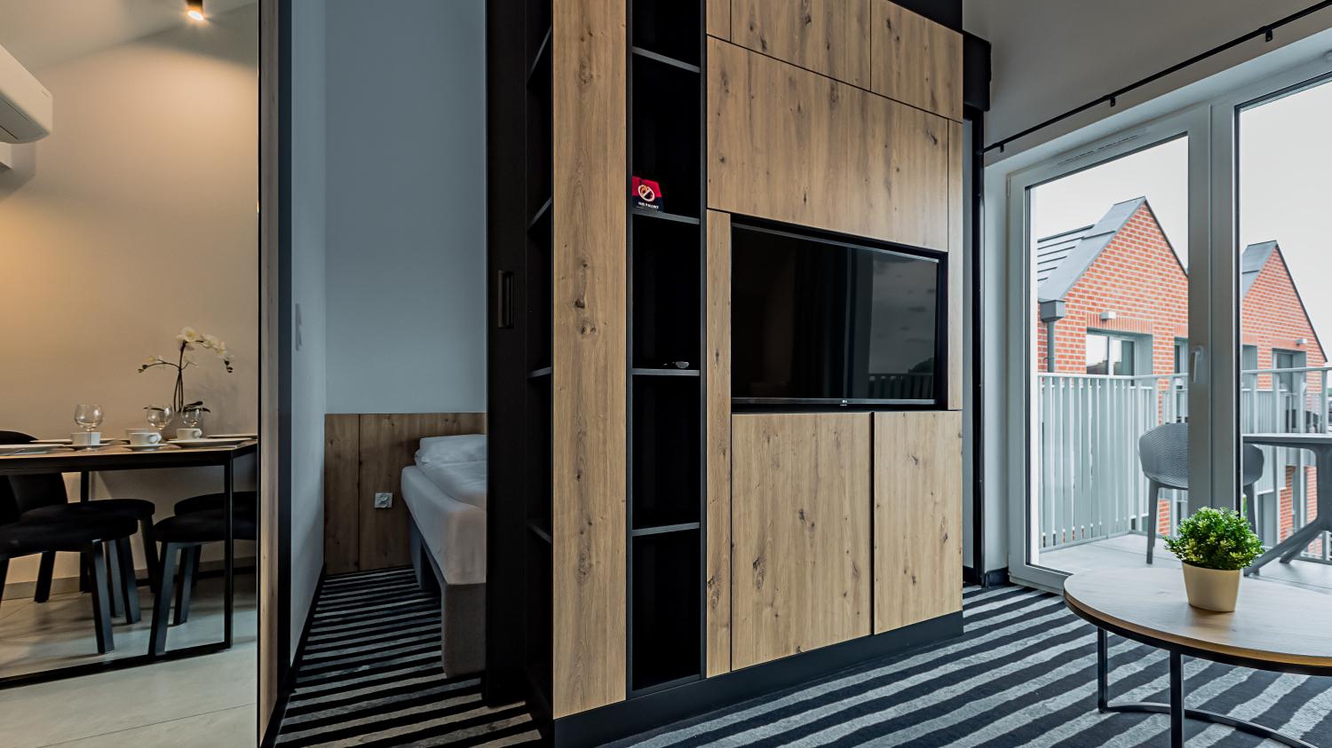W apartamencie znajduje się doskonale wyposażony aneks kuchenny przystosowany do zaspokajania codziennych potrzeb. Do dyspozycji naszych Gości udostępniamy sprzęt AGD m.in. lodówkę, płytę grzewczą oraz komplet naczyń, sztućce, akcesoria kuchenne, szklanki i kieliszki do wina. Wszystko, co potrzebne by samodzielnie przygotować posiłki i cieszyć się wspólnymi chwilami z bliskimi.