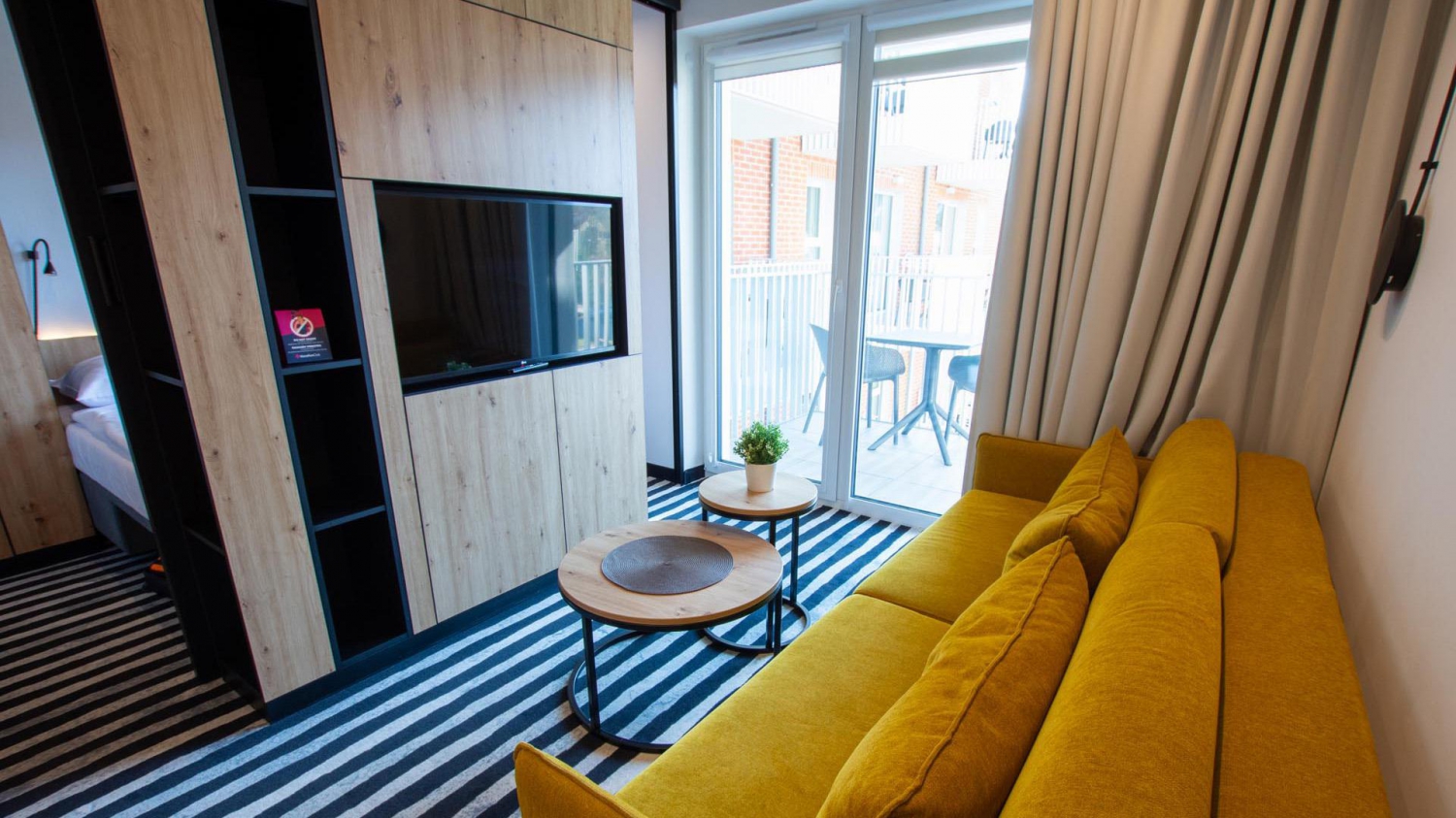 VacationClub™ – Green Port Apartament 304 znajduje się w Podczelu – spokojnym osiedlu stanowiącym część Kołobrzegu, oddalonym od jego centrum o 8 km i otoczonym malowniczym Ekoparkiem Wschodnim. Inwestycja oddalona jest zaledwie 10 minut spacerem od morza oraz pięknej, szerokiej plaży. Apartament znajduje się na 3 piętrze. Przestrzeń podzielona została na część sypialną z łóżkiem małżeńskim i łazienką, która oddzielona jest od salonu przesuwnymi drzwiami. W salonie wygodna, rozkładana sofa oraz dobrze wyposażony aneks kuchenny. Parking podziemny płatny 25 zł za dobę.
