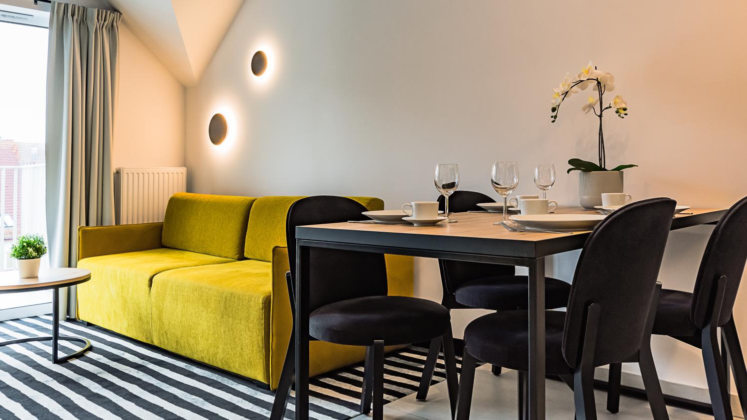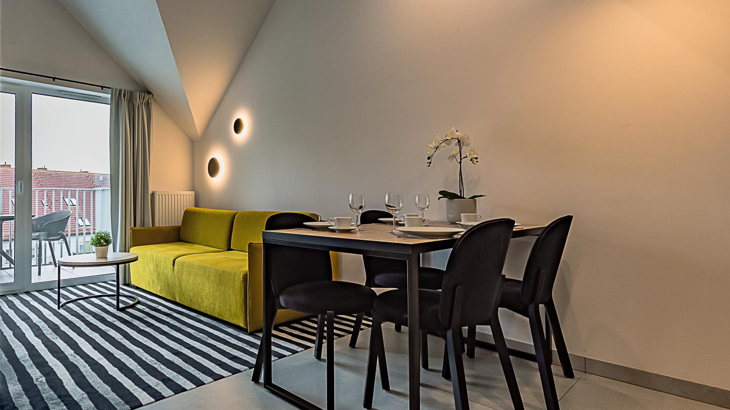 W apartamencie znajduje się doskonale wyposażony aneks kuchenny przystosowany do zaspokajania codziennych potrzeb. Do dyspozycji naszych Gości udostępniamy sprzęt AGD m.in. lodówkę, płytę grzewczą oraz komplet naczyń, sztućce, akcesoria kuchenne, szklanki i kieliszki do wina. Wszystko, co potrzebne by samodzielnie przygotować posiłki i cieszyć się wspólnymi chwilami z bliskimi.