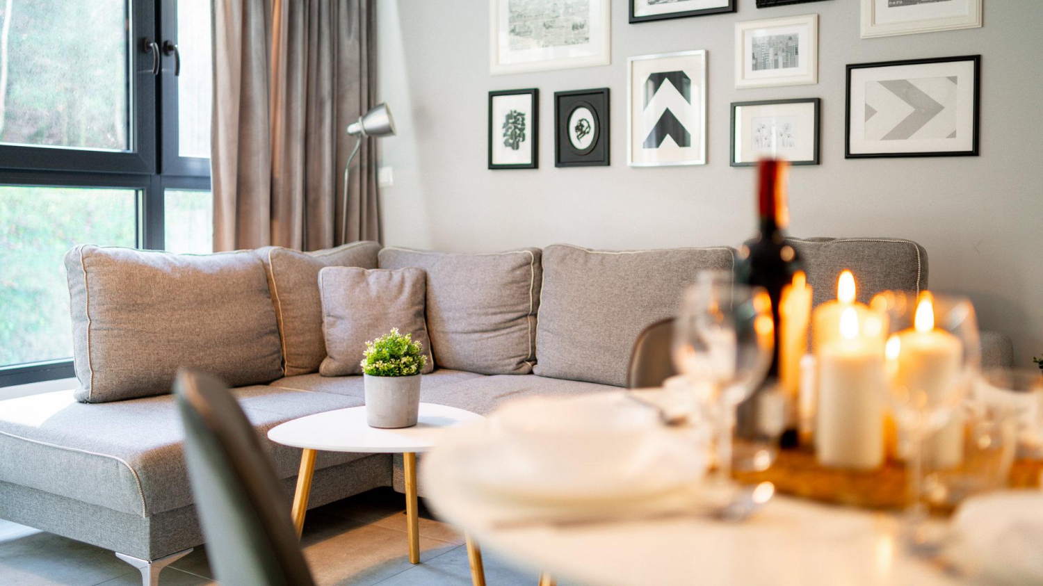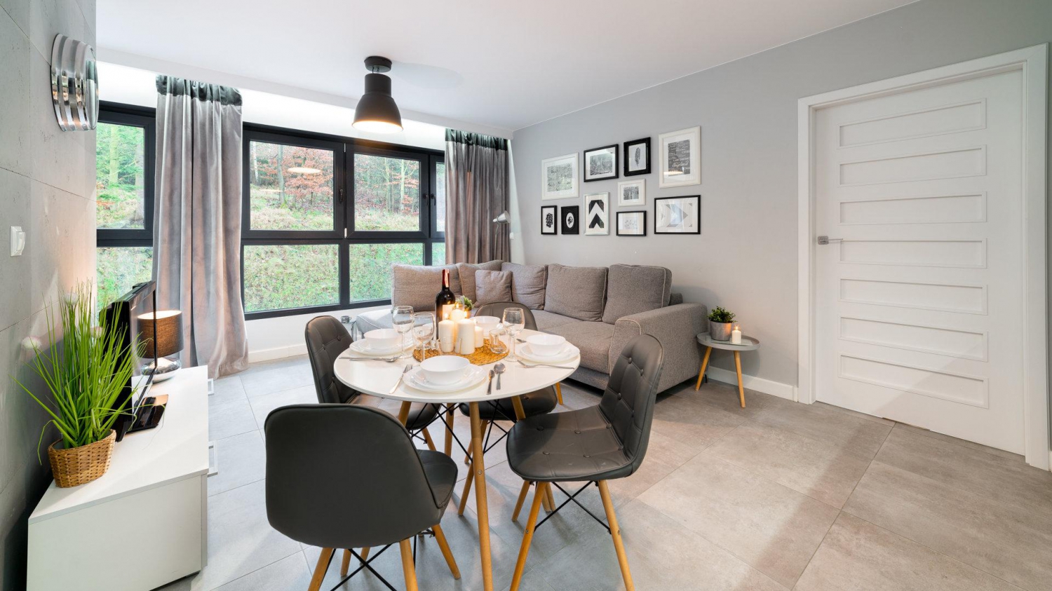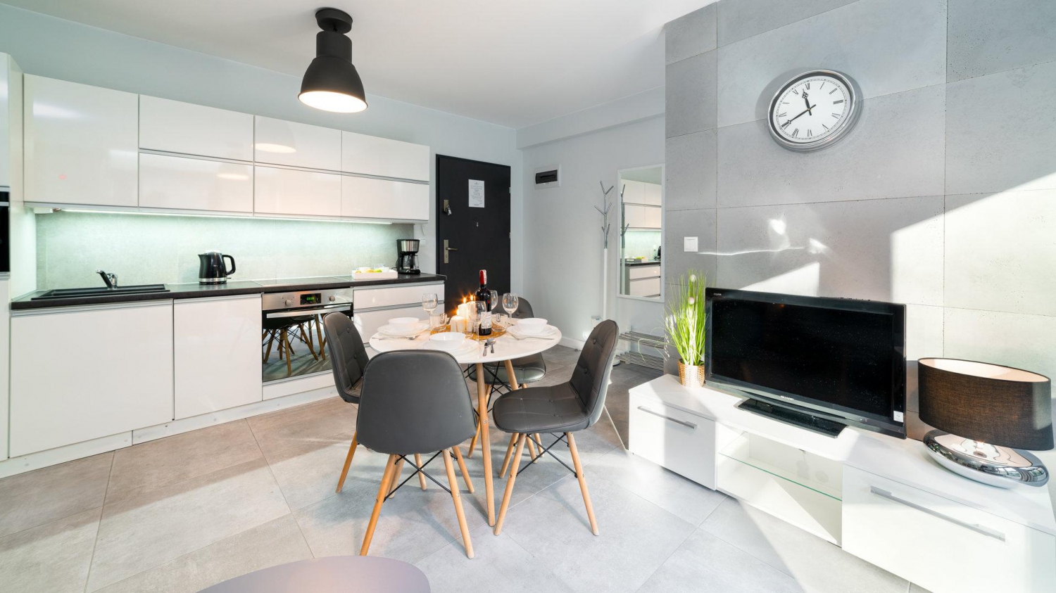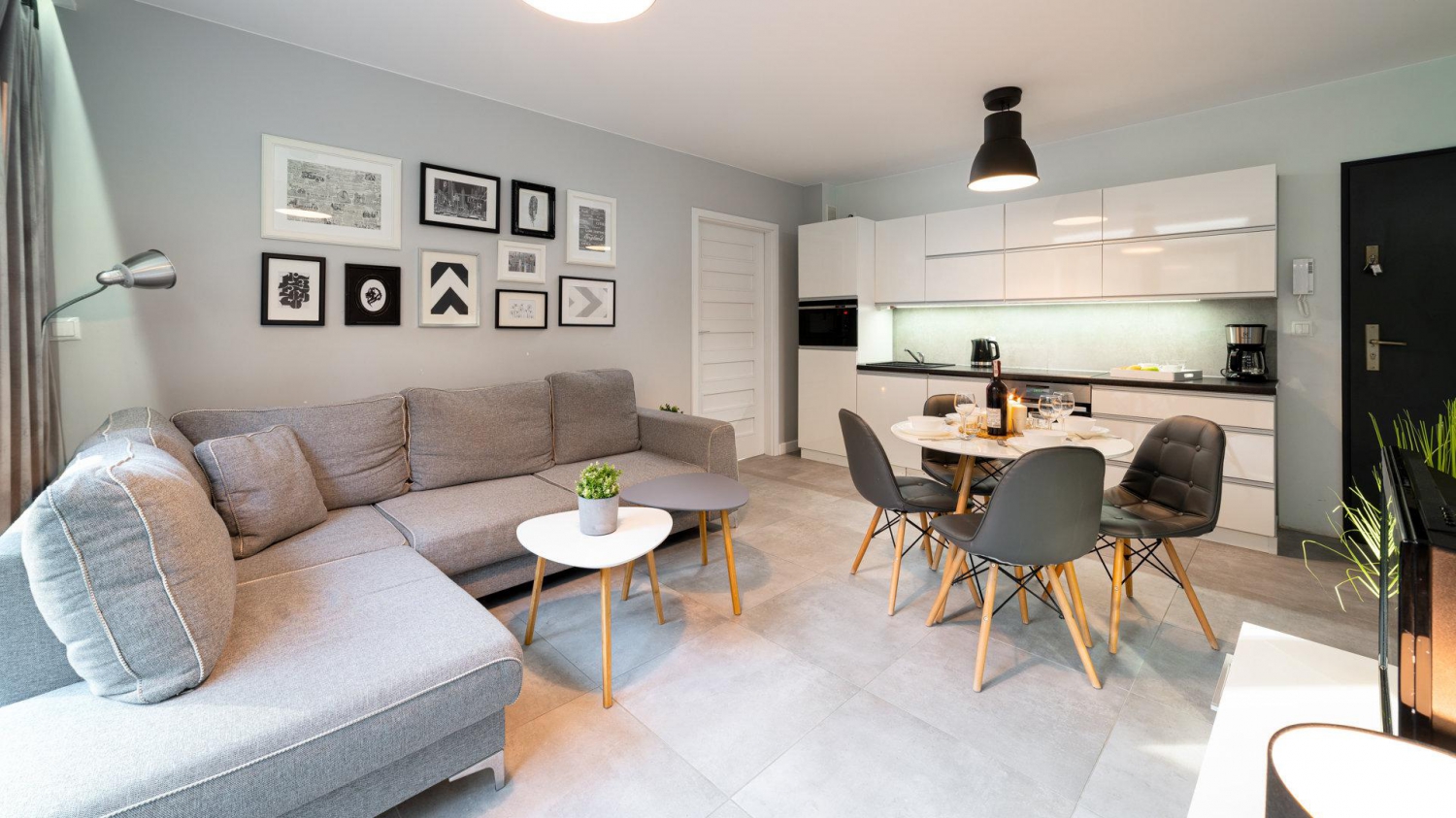 W apartamencie znajduje się także doskonale wyposażony aneks kuchenny przystosowany do zaspokajania codziennych potrzeb. Do dyspozycji naszych Gości udostępniamy sprzęt AGD m.in. lodówkę, kuchenkę oraz komplet naczyń, sztućce, akcesoria kuchenne, szklanki i kieliszki do wina. Wszystko, co potrzebne by samodzielnie przygotować posiłki i cieszyć się wspólnymi chwilami z bliskimi.