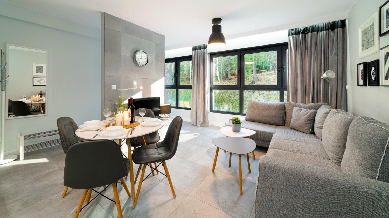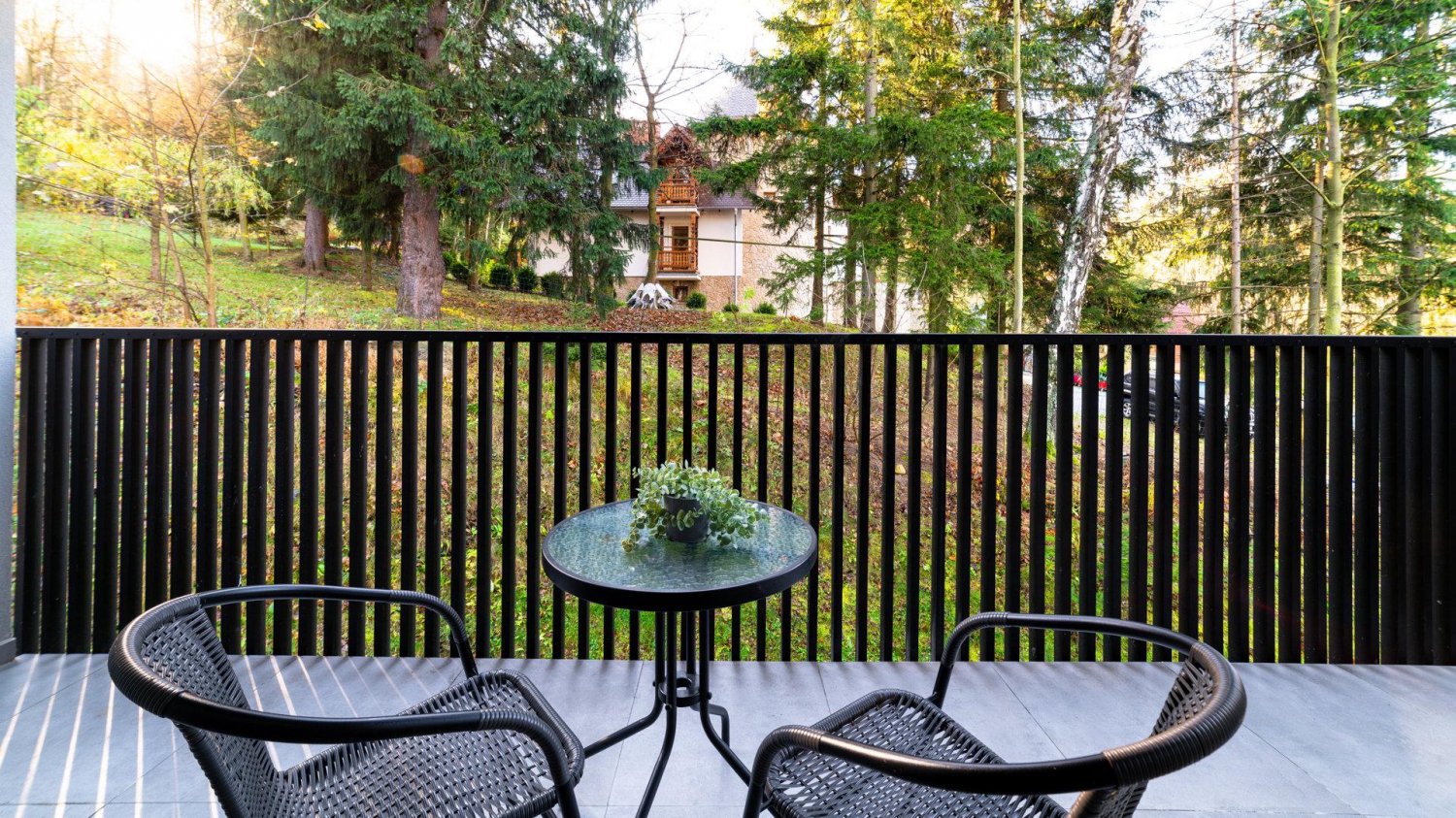 VacationClub™ - Jana Matejki 1 apartament 5 mieści się na pierwszym piętrze budynku. Elegancki, gustownie urządzony apartament, o powierzchni użytkowej 44 m². Przeznaczony jest dla maksymalnie 4 osób. Idealny dzięki pięknym wnętrzom, bogatemu wyposażeniu i dużym oknom z widokiem na las. Bardzo przytulny apartament, ktory będzie doskonałym miejscem odpoczynku i bazą wypadową dla dalszych i bliższych wędrówek górskich oraz fanów białego szaleństwa. Goście mają do dyspozycji salon z częścią jadalnianą i wypoczynkową. W pełni wyposażony aneks kuchenny, a także łazienkę z prysznicem. W zamykanej sypailni znajduje się wygodne łóżko małżeńskie oraz wyjście na balkon.