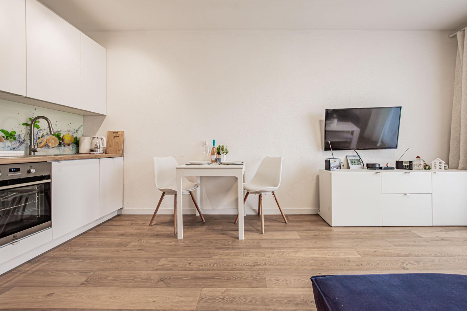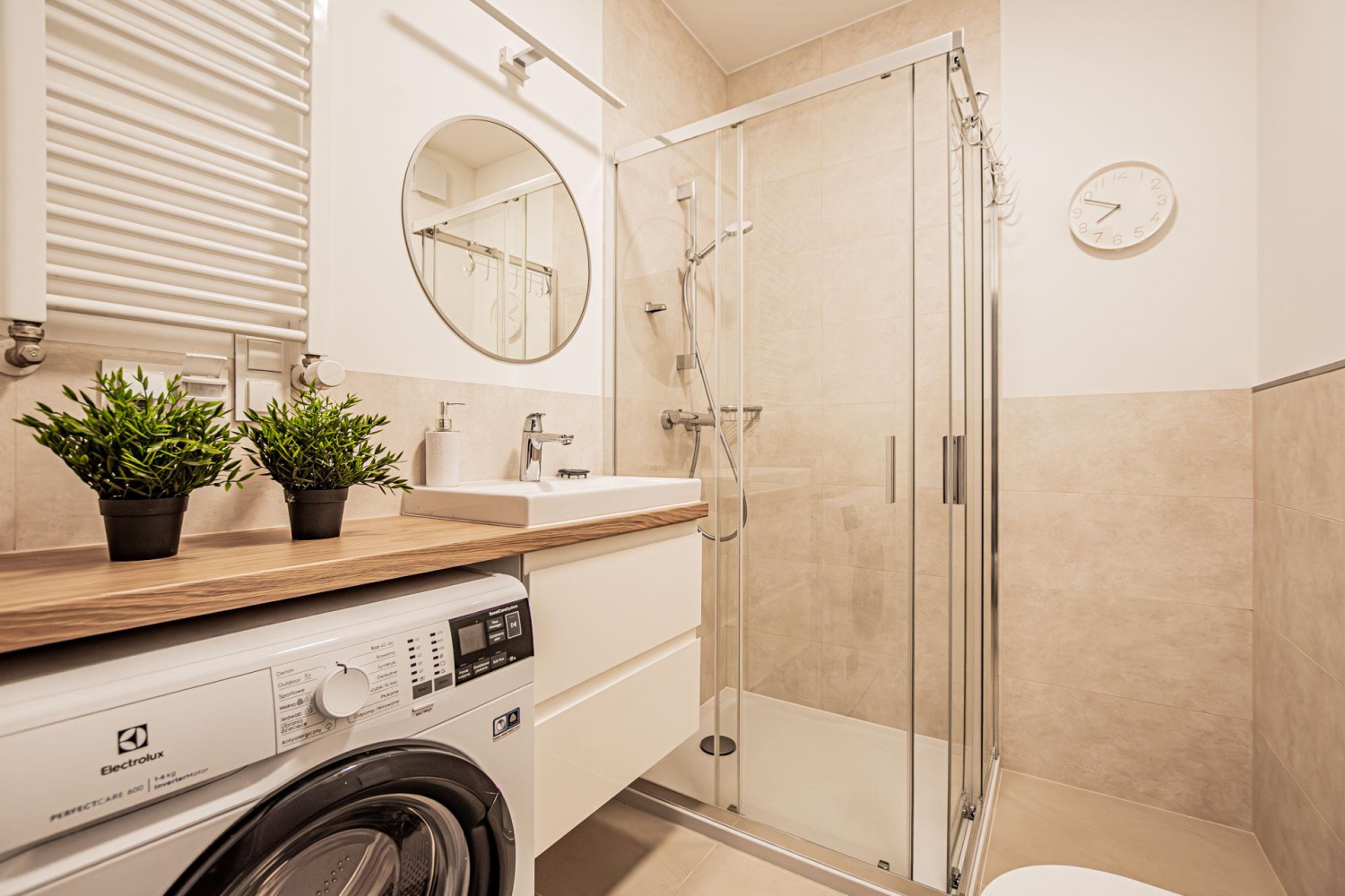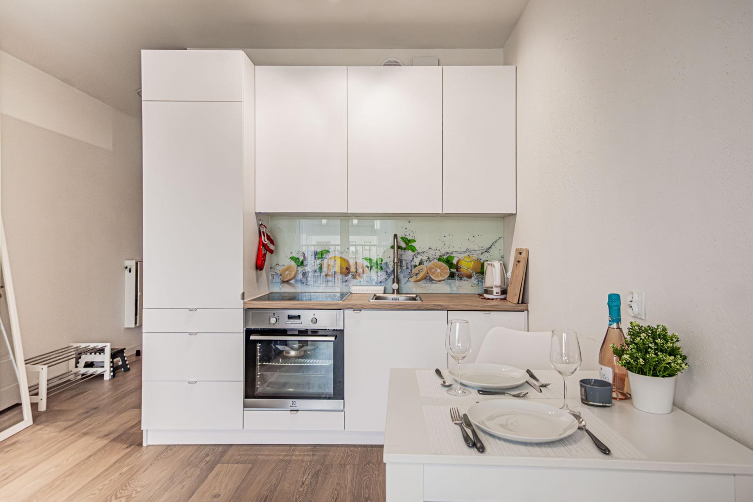 W apartamencie znajduje się doskonale wyposażony aneks kuchenny przystosowany do zaspokajania codziennych potrzeb. Do dyspozycji naszych Gości udostępniamy sprzęt AGD m.in. lodówkę, kuchenkę, oraz komplet naczyń, sztućce, akcesoria kuchenne, szklanki i kieliszki do wina. Wszystko, co potrzebne by samodzielnie przygotować posiłki i cieszyć się wspólnymi chwilami z bliskimi