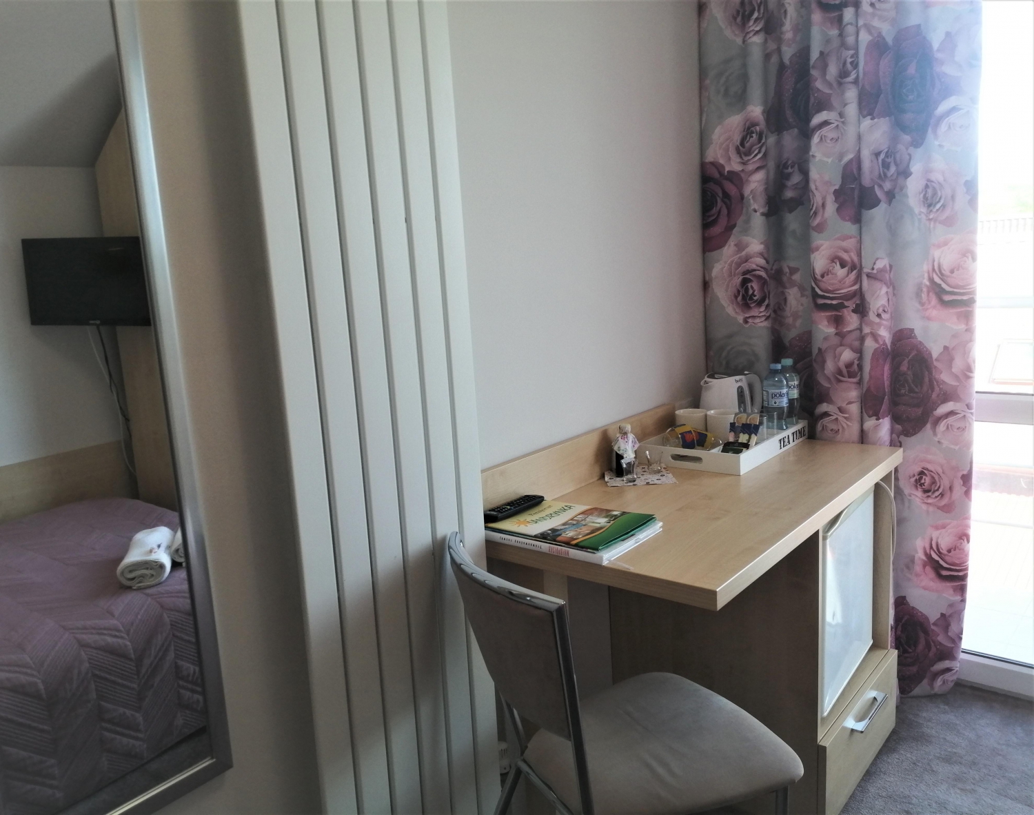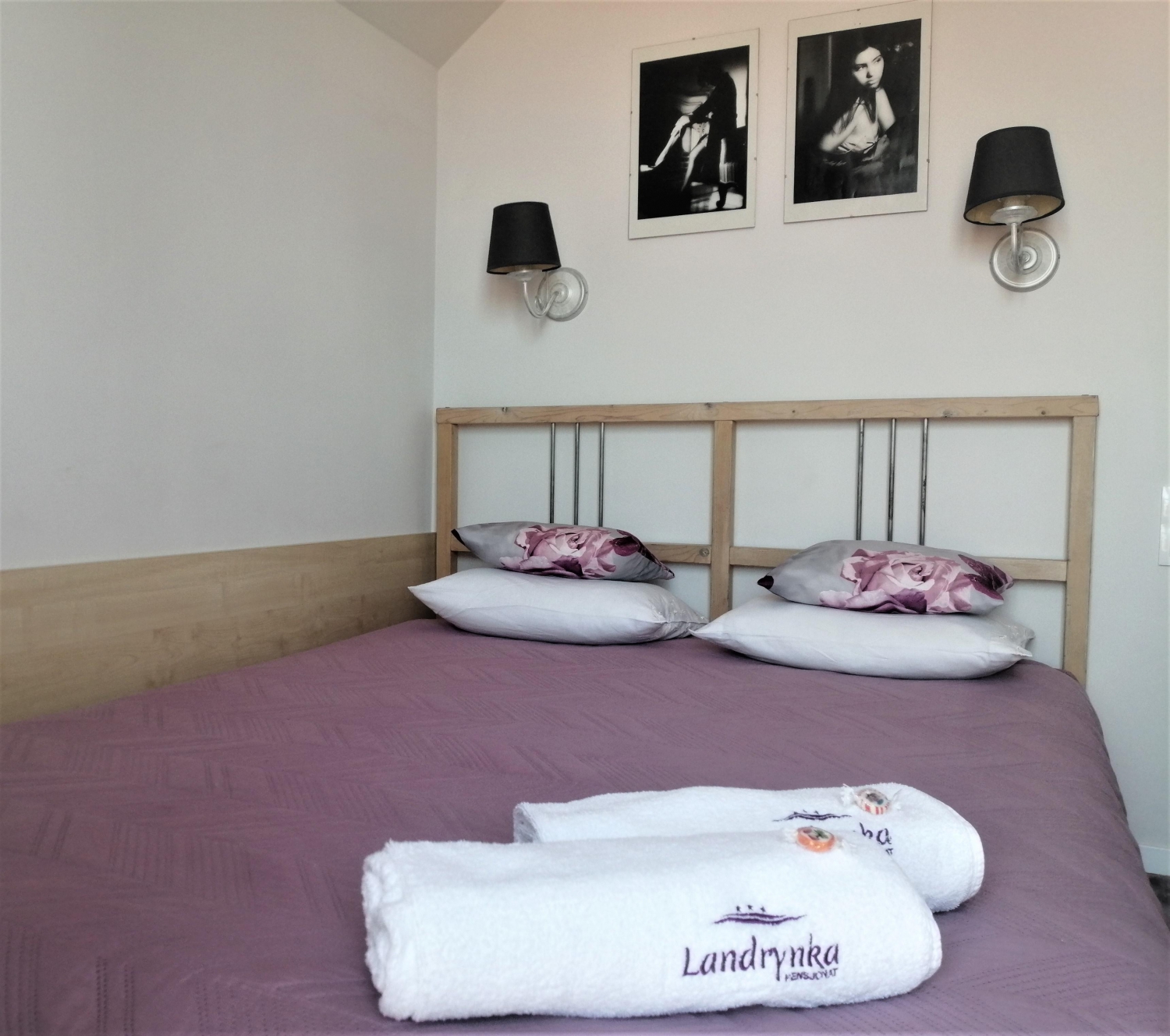 Pensjonat Landrynka to kameralny, zadbany obiekt położony w nadmorskiej części Darłowa – Darłówku, zaledwie kilka minut spacerem od szerokiej, piaszczystej plaży i portu. Budynek utrzymany jest w nowoczesnym, nadmorskim stylu, łącząc komfort, funkcjonalność i przyjazną atmosferę idealną gości szukających wypoczynku blisko morza. Romantyczny, kameralny pokój dwuosobowy z łóżkiem małżeńskim i własną łazienką z prysznicem, wyposażony w lodówkę. Lokalizacja od strony południowo-wschodniej zapewnia widok na port. W pokoju znajduje się TV LCD, lodówka, czajnik bezprzewodowy z zestawem do parzenia kawy i herbaty, koce, oraz woda mineralna w dniu przyjazdu. Ciepłe, pastelowe kolory oraz starannie dobrane dodatki tworzą przytulną, przyjazną atmosferę. W okresie letnim dużą zaletą są dwa odkryte, podgrzewane baseny.