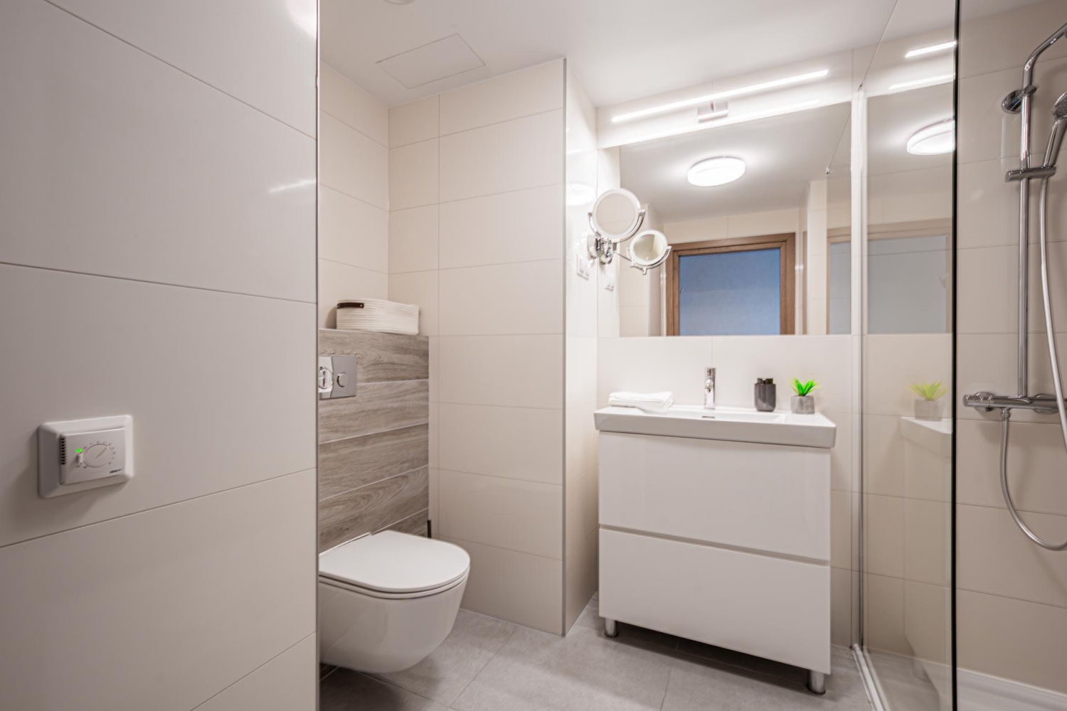 W apartamencie znajduje się doskonale wyposażony aneks kuchenny przystosowany do przygotowywania codziennych posiłków. Do dyspozycji Gości jest sprzęt AGD, m.in. lodówka, płyta indukcyjna, mikrofala, czajnik elektryczny oraz ekspres do kawy, a także komplet naczyń, sztućce, akcesoria kuchenne, szklanki i kieliszki do wina. Znaleźć tu można wszystko, co niezbędne, by samodzielnie przygotowywać posiłki i cieszyć się wspólnymi chwilami w gronie rodziny lub znajomych.