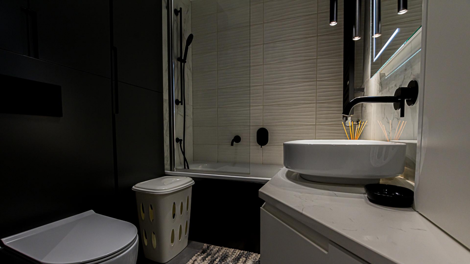 Kuchnia w apartamencie została wyposażona w funkcjonalny sprzęt AGD: lodówkę, zmywarkę, piekarnik, płytę indukcyjną z okapem oraz czajnik elektryczny. Naczynia obiadowe, garnki, przybory kuchenne, kieliszki do wina - to wszystko co potrzebne by samodzielnie przygotować posiłki i cieszyć się wspólnymi chwilami z bliskimi.