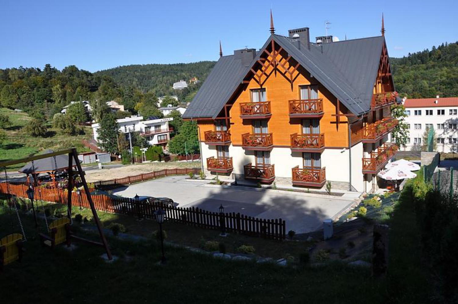 Nowoczesny obiekt przy ul. Szkolnej 7 w Krynicy-Zdroju oferuje komfortowe, przestronne apartamenty i pokoje rodzinne. Budynek zapewnia 30 bezpłatnych, monitorowanych miejsc parkingowych oraz bezpłatne Wi-Fi. Wyróżnia się wysokim standardem wyposażenia i wygodą dopasowaną do potrzeb najbardziej wymagających Gości.
